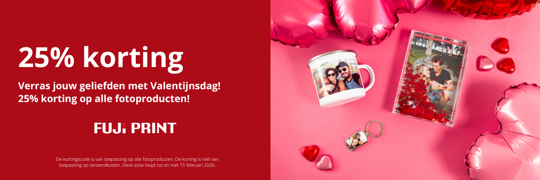 Een klein gebaar met een groots effect ✨ Of je nu iets voor jezelf wilt maken of een gepersonaliseerd cadeau voor Valentijn zoekt: dit is hét moment om te bestellen. Van 26/01 t.e.m. 15/02/2026 : 25% korting op alle FOTOWERK ! De actiecode is 'VALENTIJN26BE' Bestellen via www.fujiprint.be & GRATIS afhalen in de winkel.
